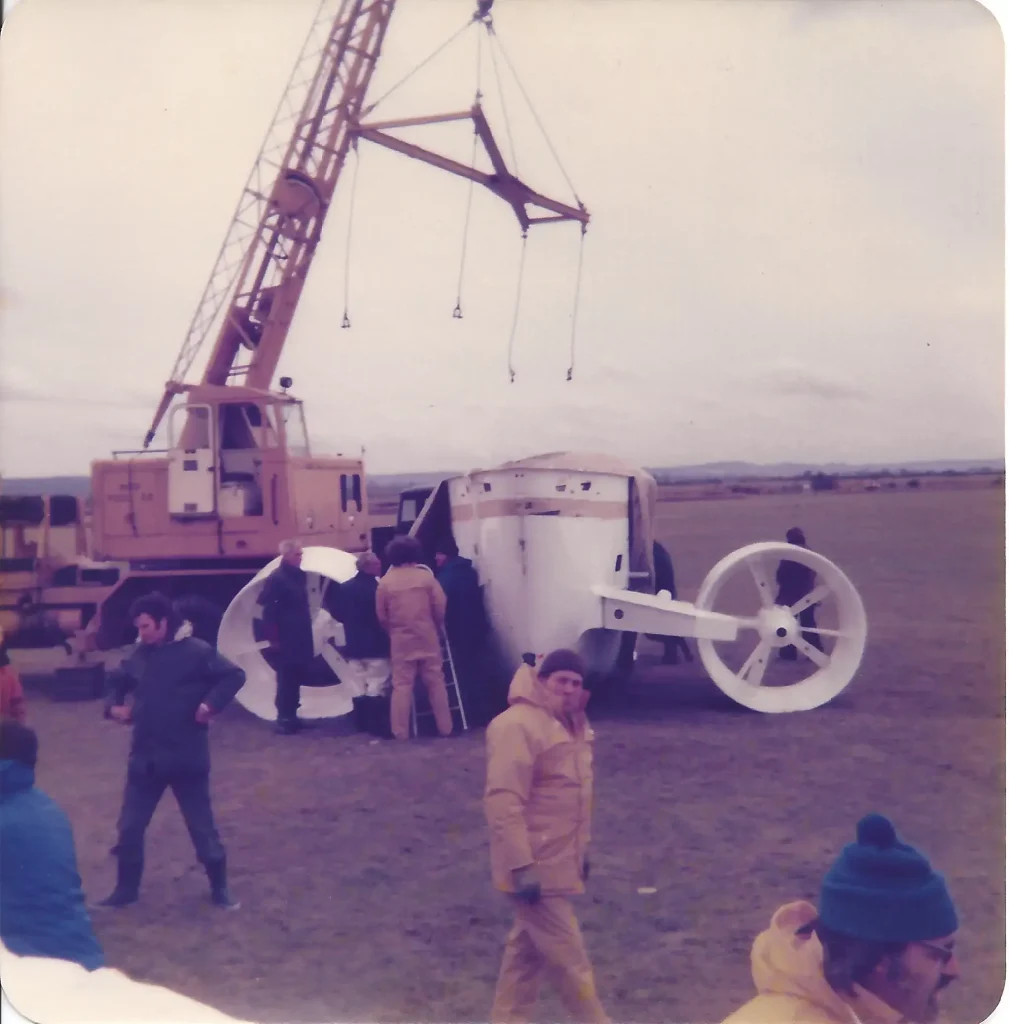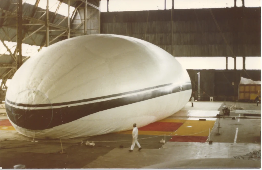 The envelope, with new valves, was able to be inflated in the summer of 1978. More details and further changes were found once the envelope was inflated, and further testing could be undertaken. This led to slowing the project even further, exacerbated by there were no proper workshop facilities in the hangar. Each month delay, the financial position of the company worsened due to overhead costs. The winter of 1978 was one of the worst for many years, and the conditions in the hangar were particularly bad. On one occasion, they were so concerned about the water in the ship’s ballast tanks that Bruce Reid, one of the Aerospace Developments team, had to spend a night watching floating night lights in the tanks to prevent ice from building up and splitting the ballast tanks