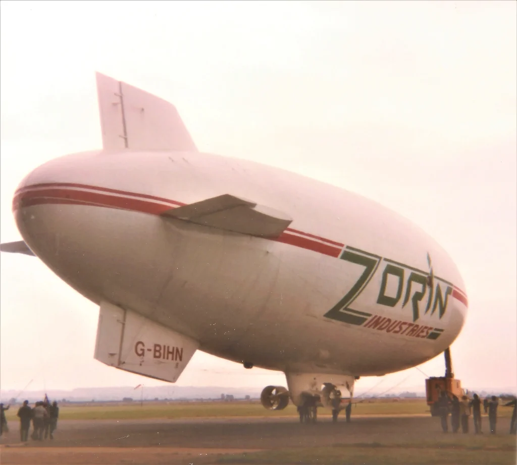 In the summer of 1984 G-B1HN had the Zorin Industries logo painted on the side of the envelope in the Cardington Shed, and then was flown down to Shoreham airfield in Surrey, where it would be based for one week of filming.