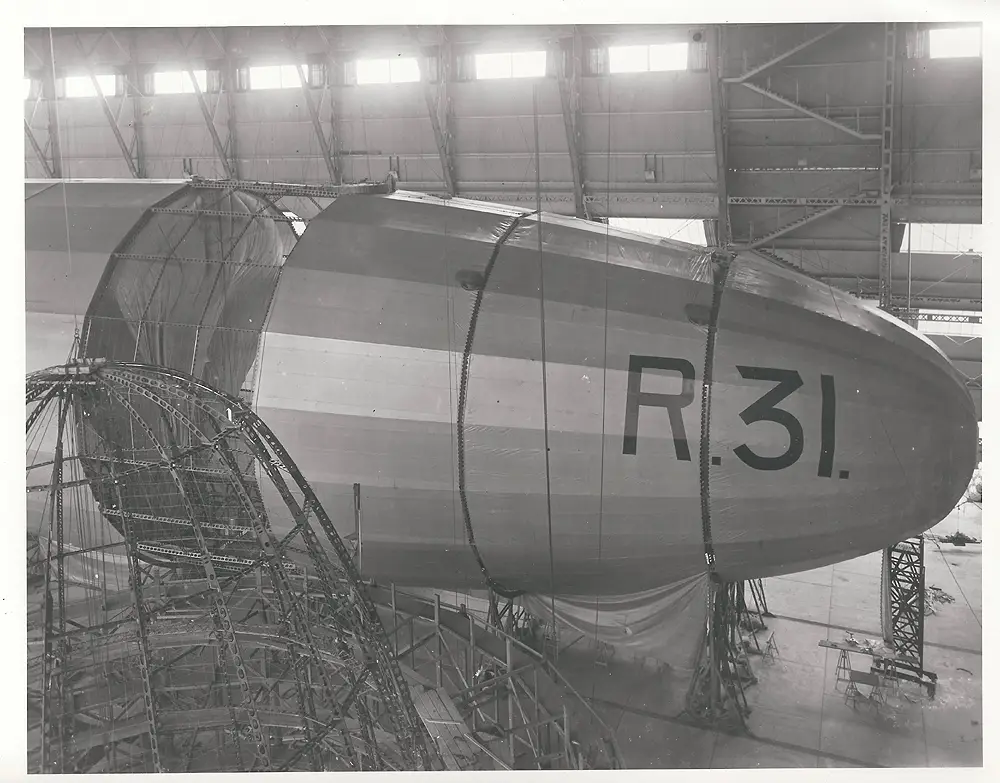 The R31 was the first to be completed at the new factory at Cardington. The Government had loaned Shorts the sum of £110,000 towards the construction of a 700ft double bay airship shed. The Cardington project had been singled out for special attention as