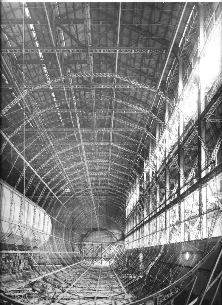 Before the shed was finished, the first frames of the new airship, the R24, had been moved into the shed for assembly.