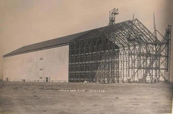 The land was purchased, and surveying commenced on the land as to where best to place the buildings. Construction began in 1926 and included an airship mast, a hydrogen plant and a hangar. The Mast followed the same basic design as the Cardington mast, with the same height and construction method. The only exception was that the base of the mast contained buildings, followed along the baseline in an octagonal shape. The airship base also contained a hydrogen plant in order that the ships could be refilled at the mast.